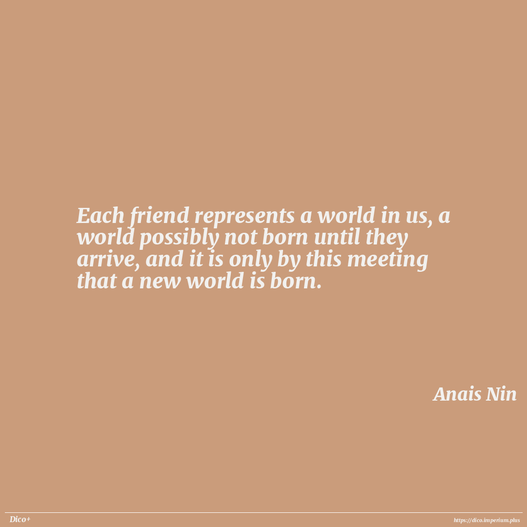Each friend represents a world in us, a world possibly not born until they arrive, and it is only by this meeting that a new world is born.