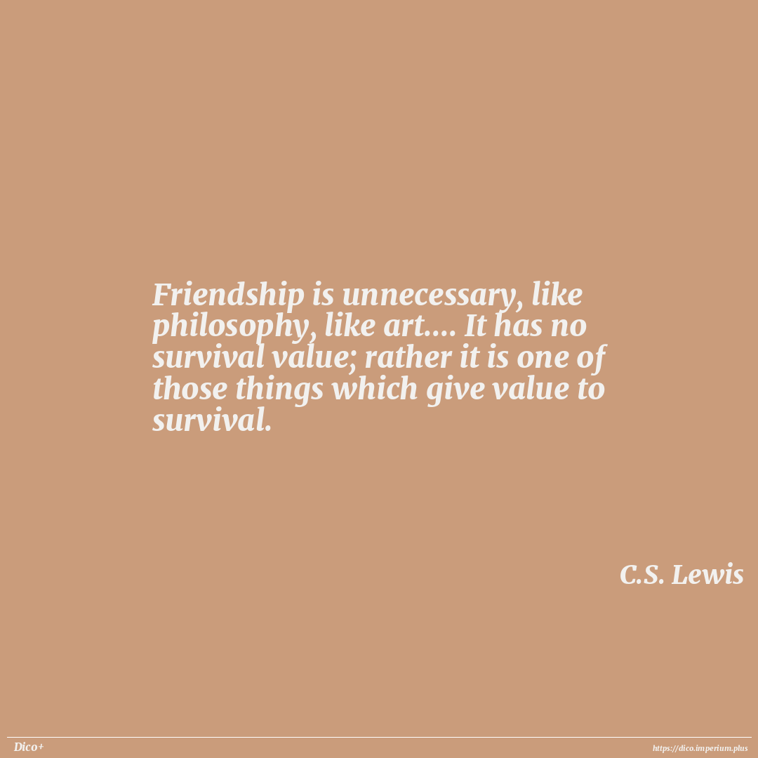 Friendship is unnecessary, like philosophy, like art.... It has no survival value; rather it is one of those things which give value to survival.