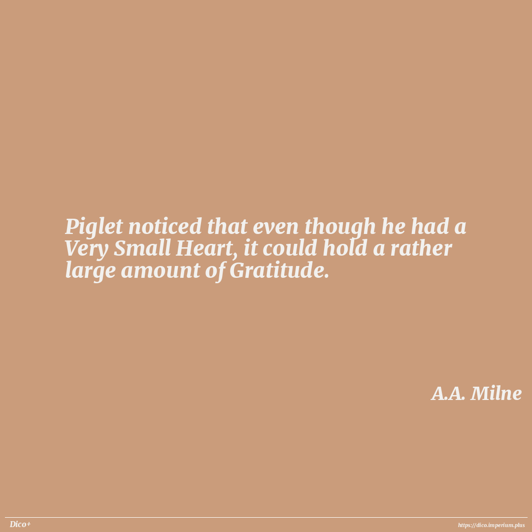 Piglet noticed that even though he had a Very Small Heart, it could hold a rather large amount of Gratitude.