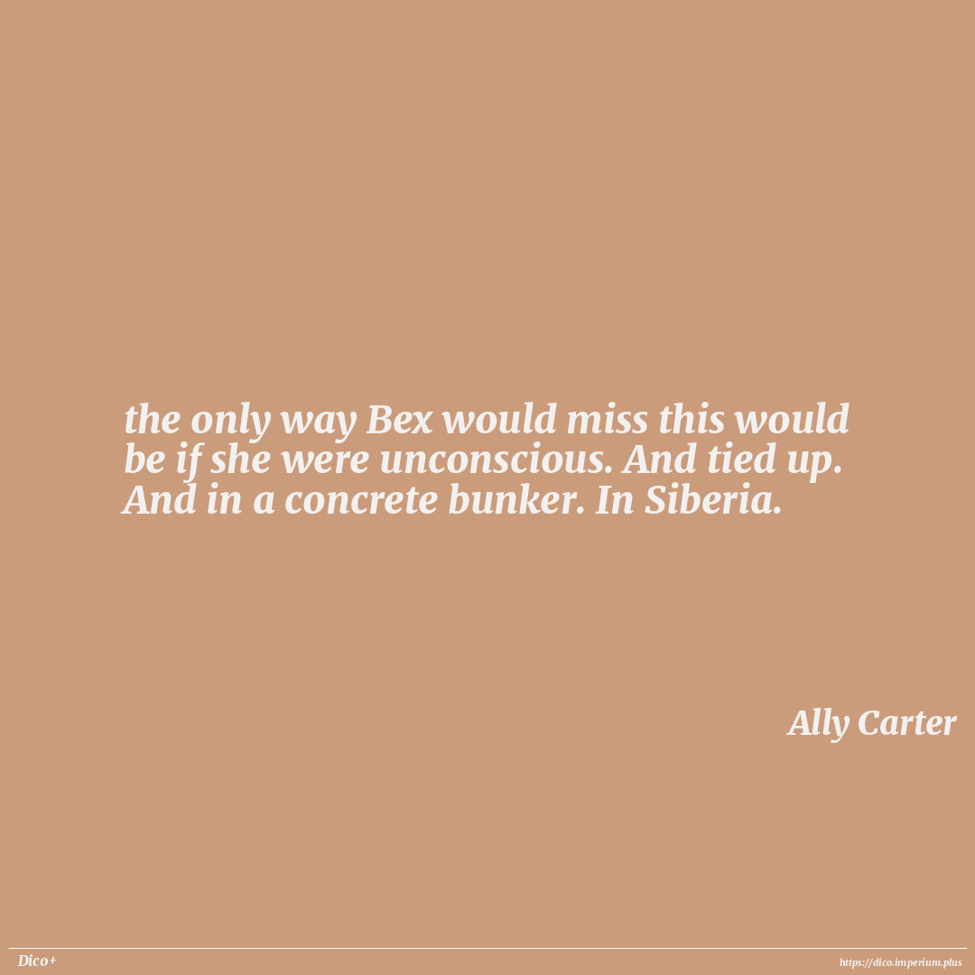 the only way Bex would miss this would be if she were unconscious. And tied up. And in a concrete bunker. In Siberia.
