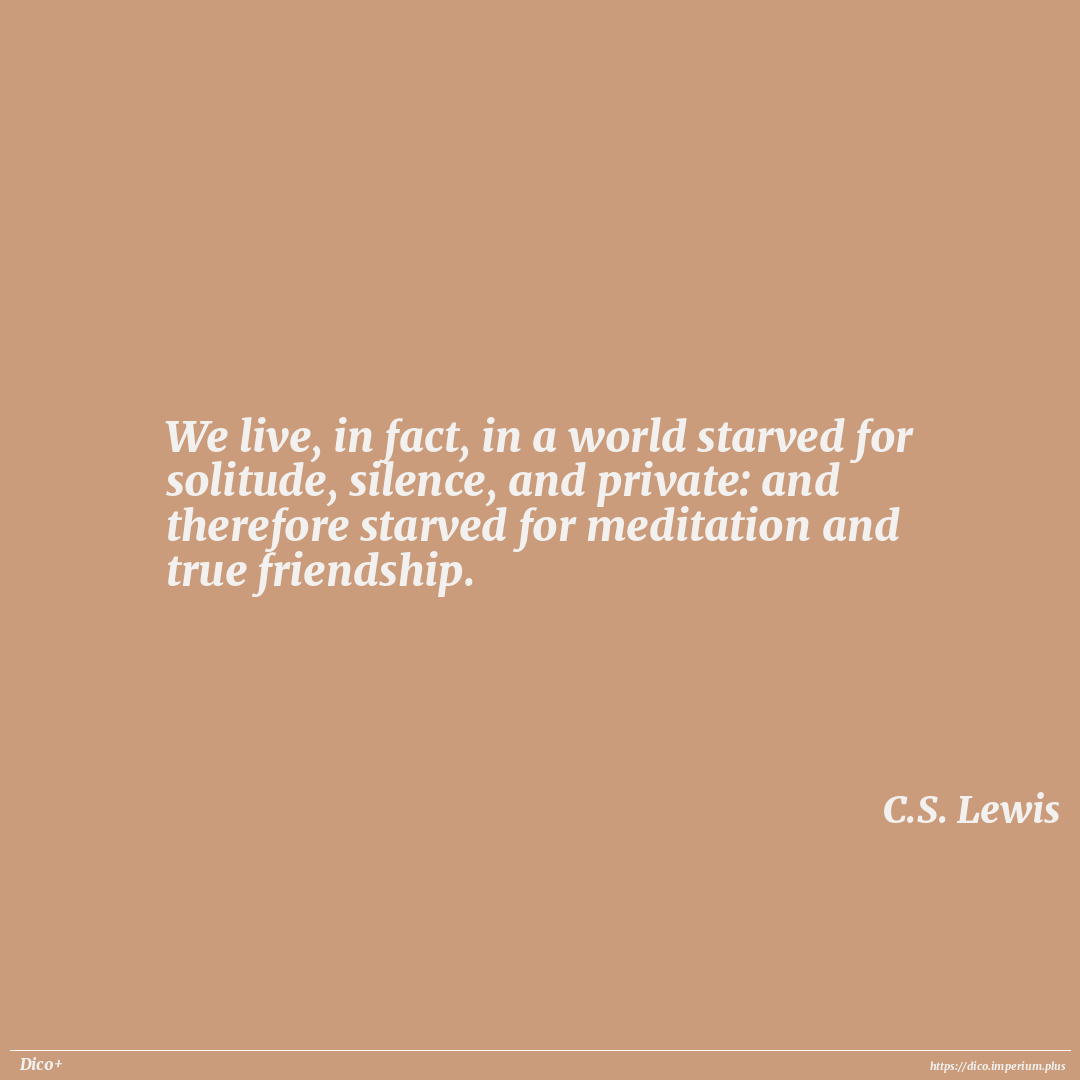 We live, in fact, in a world starved for solitude, silence, and private: and therefore starved for meditation and true friendship.