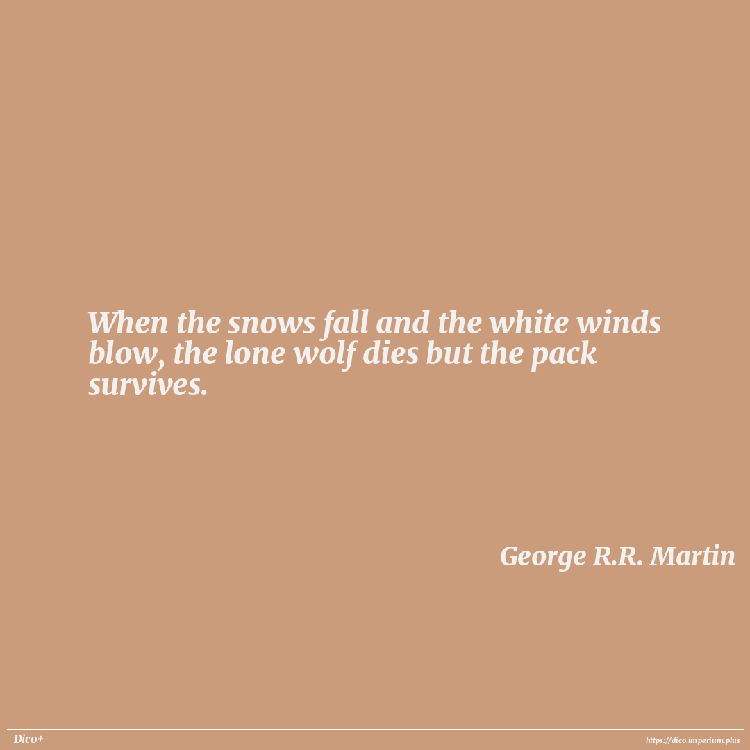 When the snows fall and the white winds blow, the lone wolf dies but the pack survives.