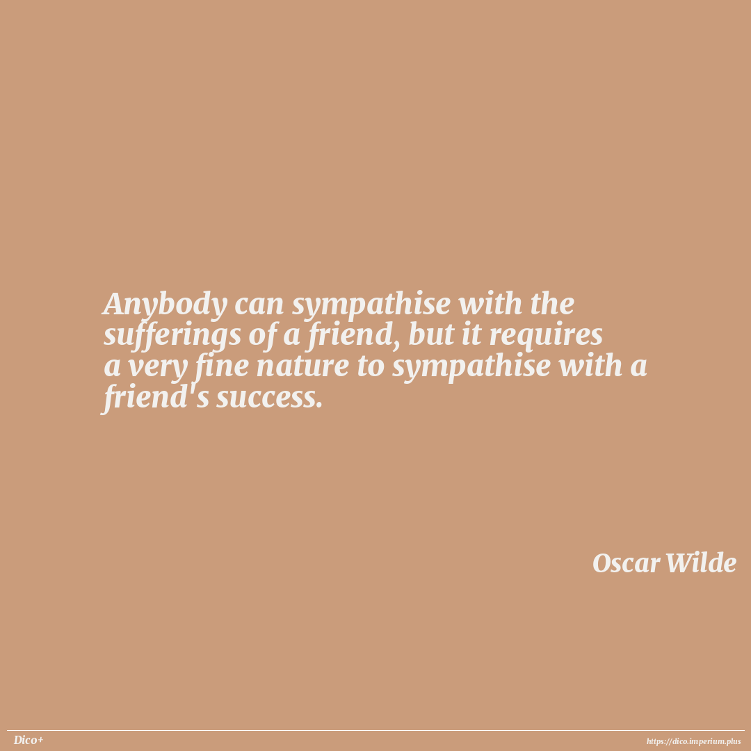 Anybody can sympathise with the sufferings of a friend, but it requires a very fine nature to sympathise with a friend's success.