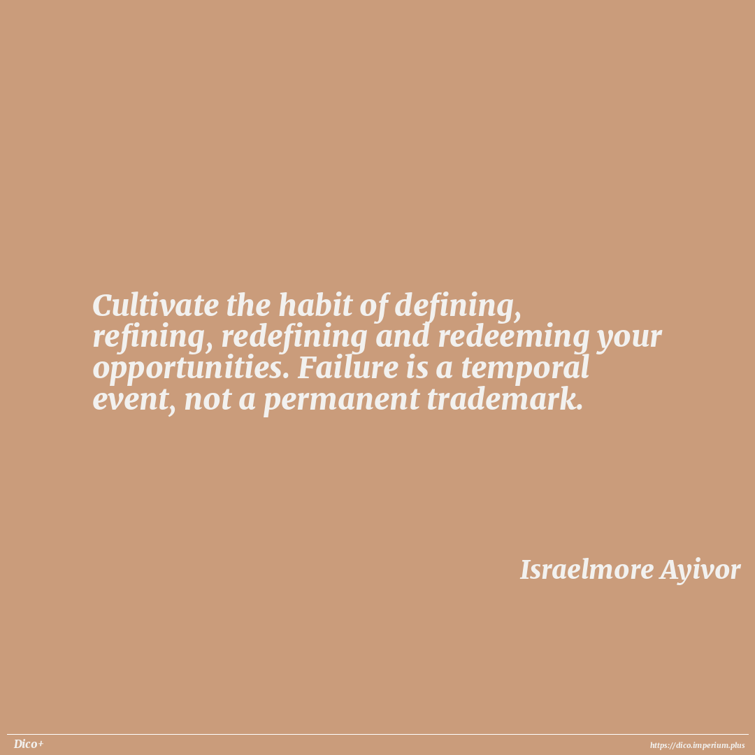 Cultivate the habit of defining, refining, redefining and redeeming your opportunities. Failure is a temporal event, not a permanent trademark.