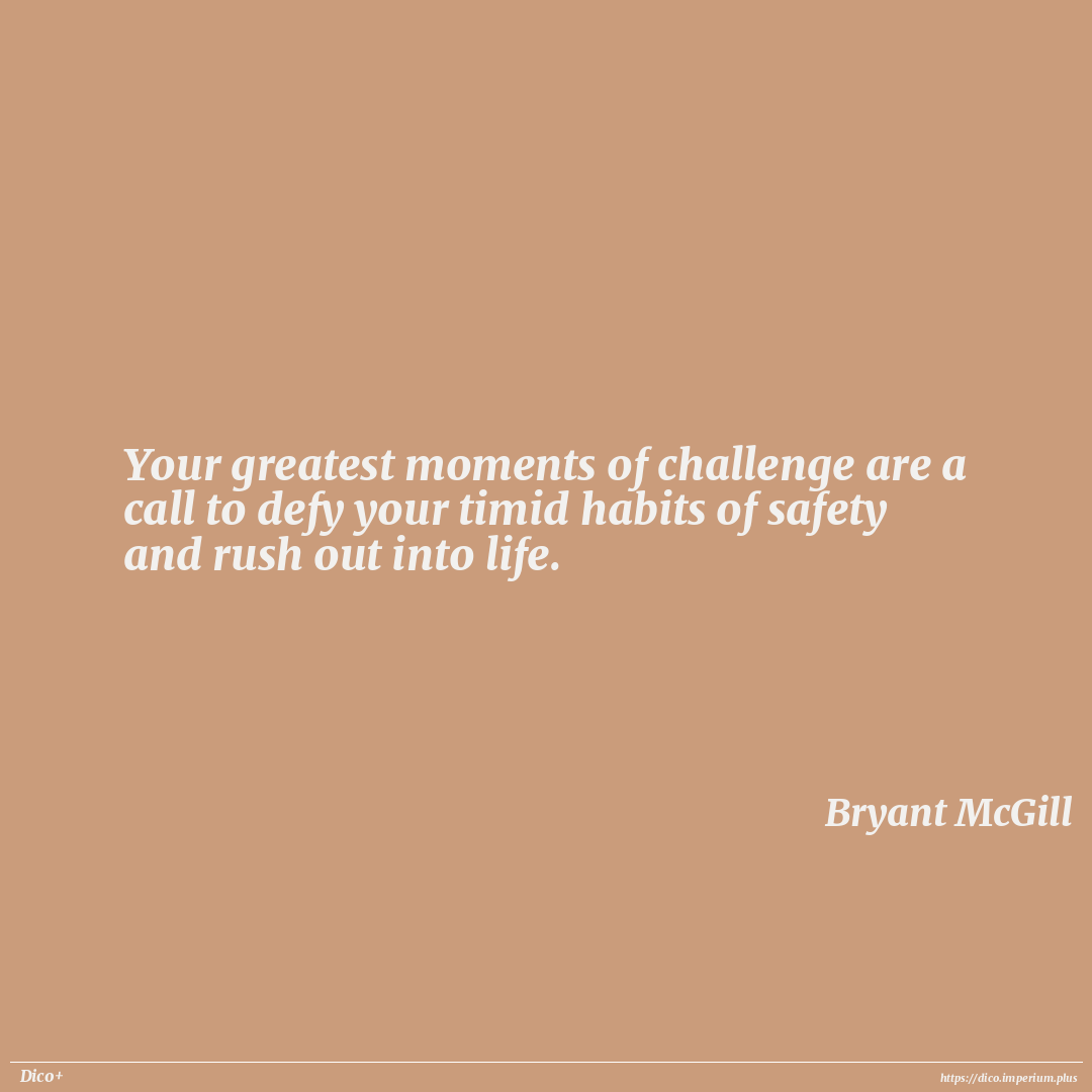 Your greatest moments of challenge are a call to defy your timid habits of safety and rush out into life.
