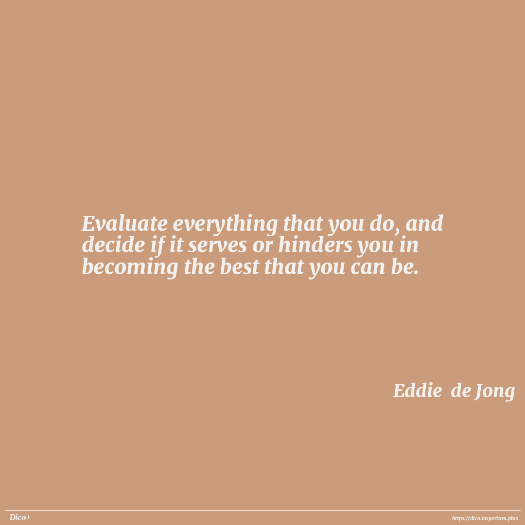 Evaluate everything that you do, and decide if it serves or hinders you in becoming the best that you can be.