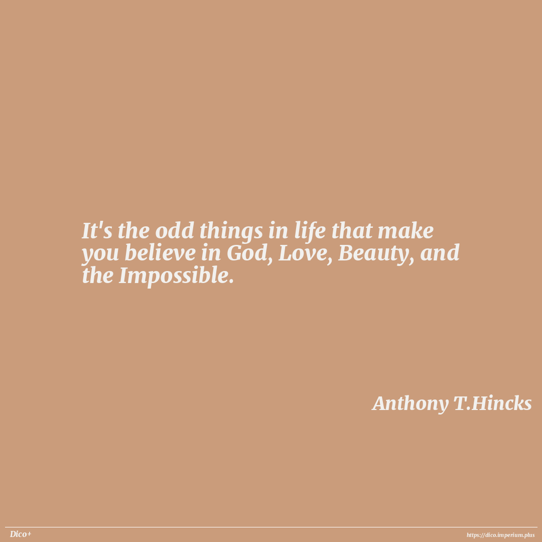 It's the odd things in life that make you believe in God, Love, Beauty, and the Impossible.