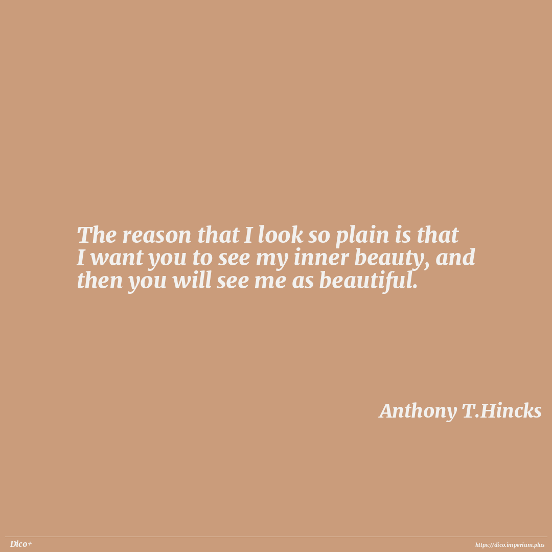 The reason that I look so plain is that I want you to see my inner beauty, and then you will see me as beautiful.