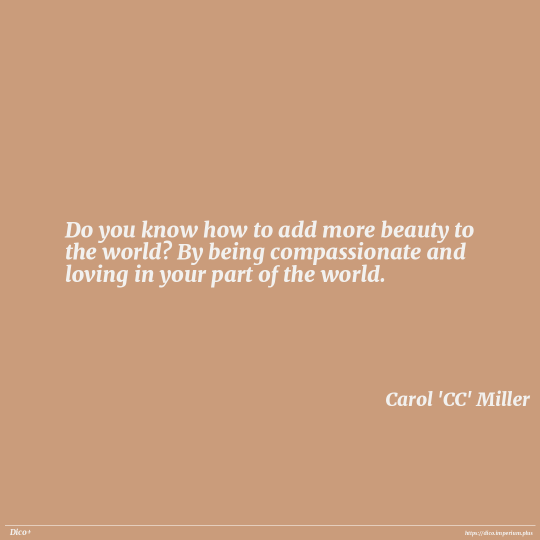 Do you know how to add more beauty to the world? By being compassionate and loving in your part of the world.