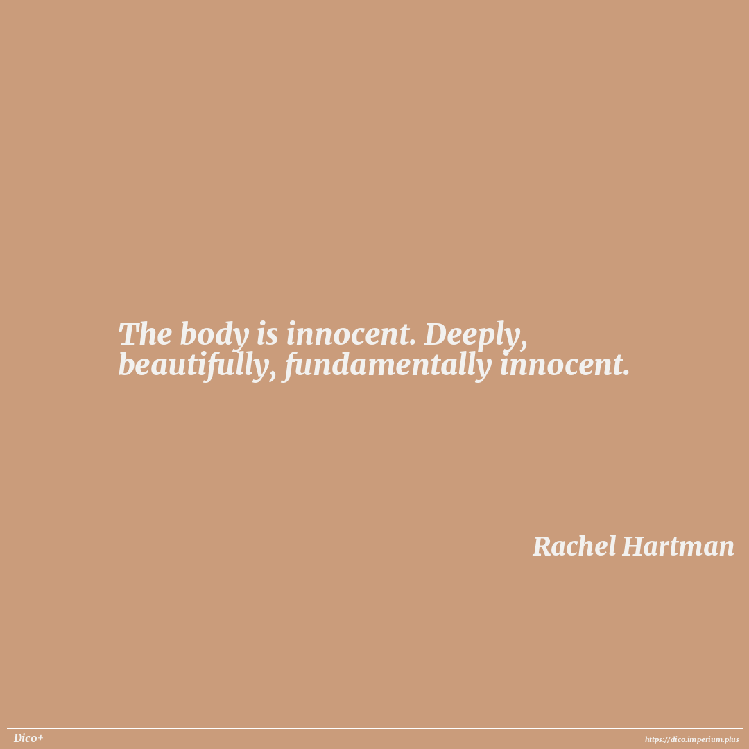 The body is innocent. Deeply, beautifully, fundamentally innocent.