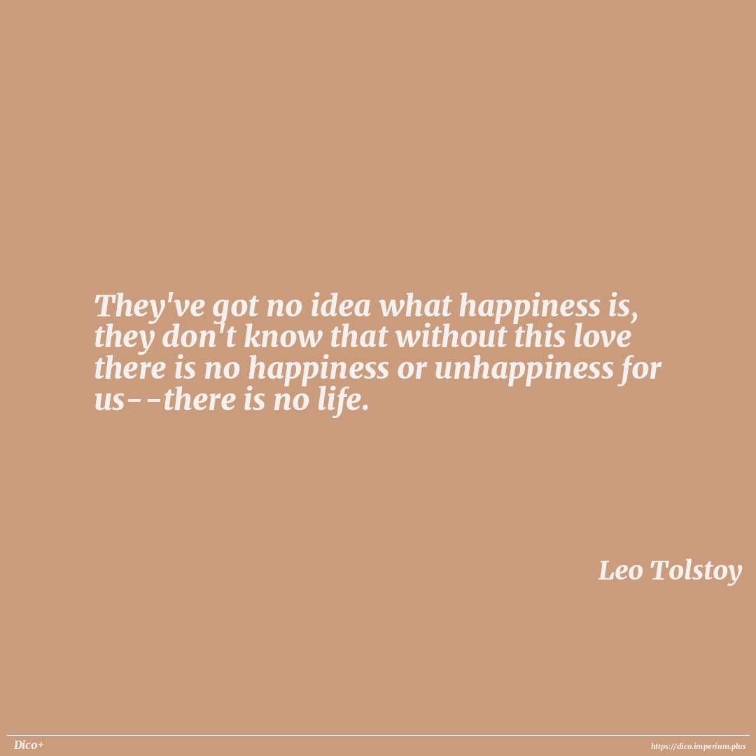 They've got no idea what happiness is, they don't know that without this love there is no happiness or unhappiness for us--there is no life.