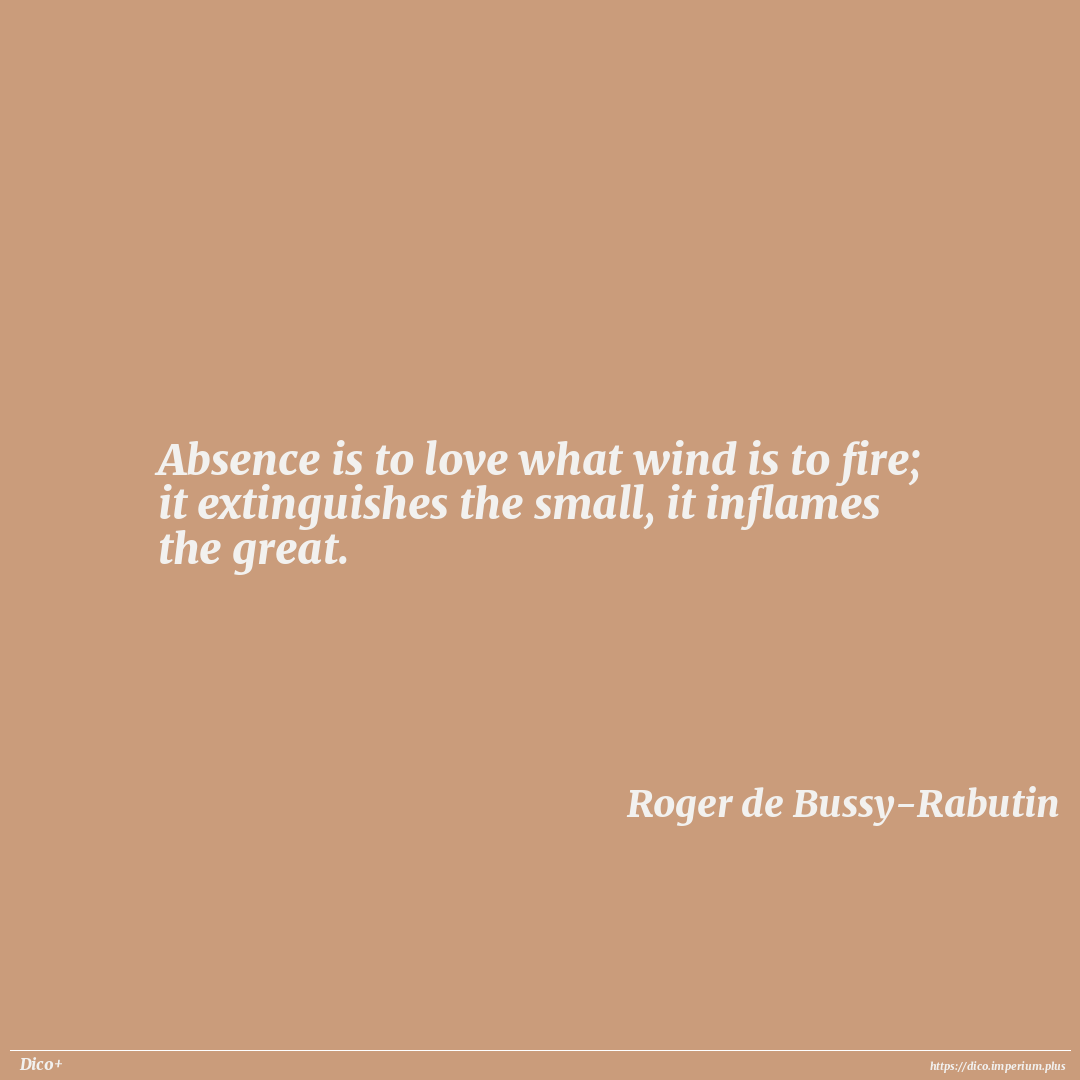 Absence is to love what wind is to fire; it extinguishes the small, it inflames the great.