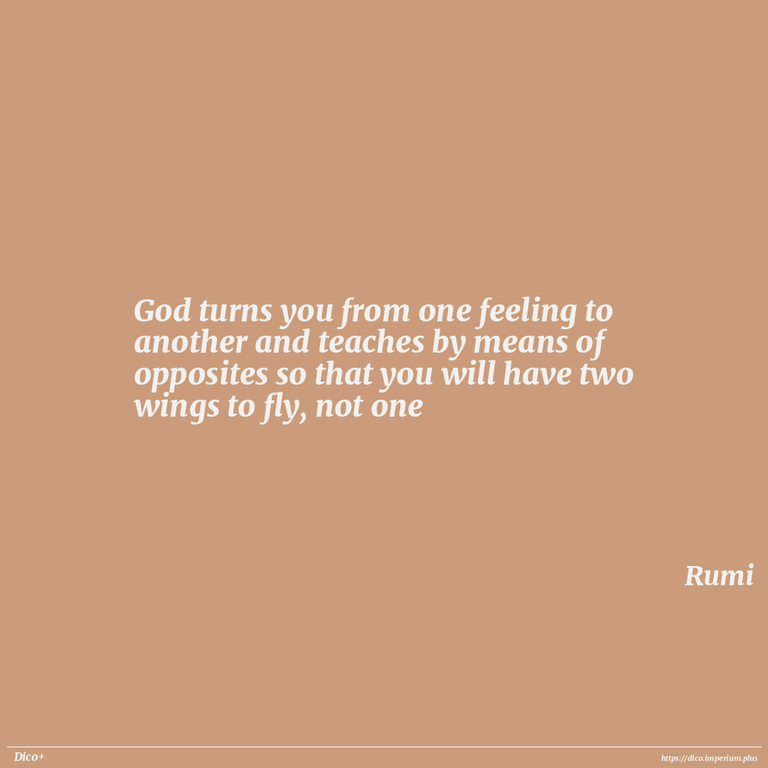 God turns you from one feeling to another and teaches by means of opposites so that you will have two wings to fly, not one