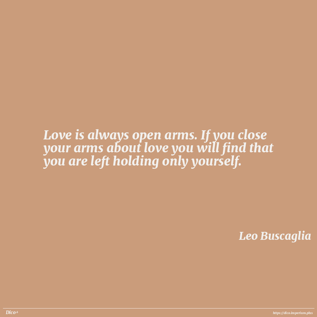 Love is always open arms. If you close your arms about love you will find that you are left holding only yourself.