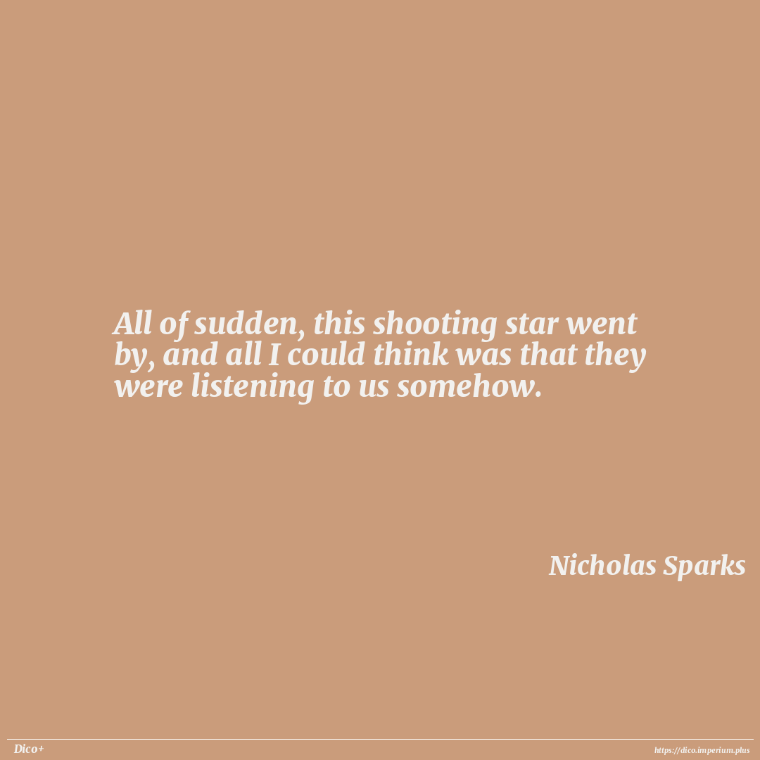 All of sudden, this shooting star went by, and all I could think was that they were listening to us somehow.