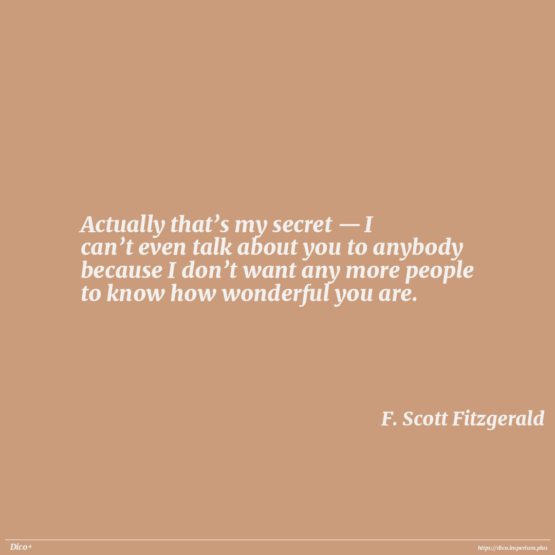 Actually that’s my secret — I can’t even talk about you to anybody because I don’t want any more people to know how wonderful you are.
