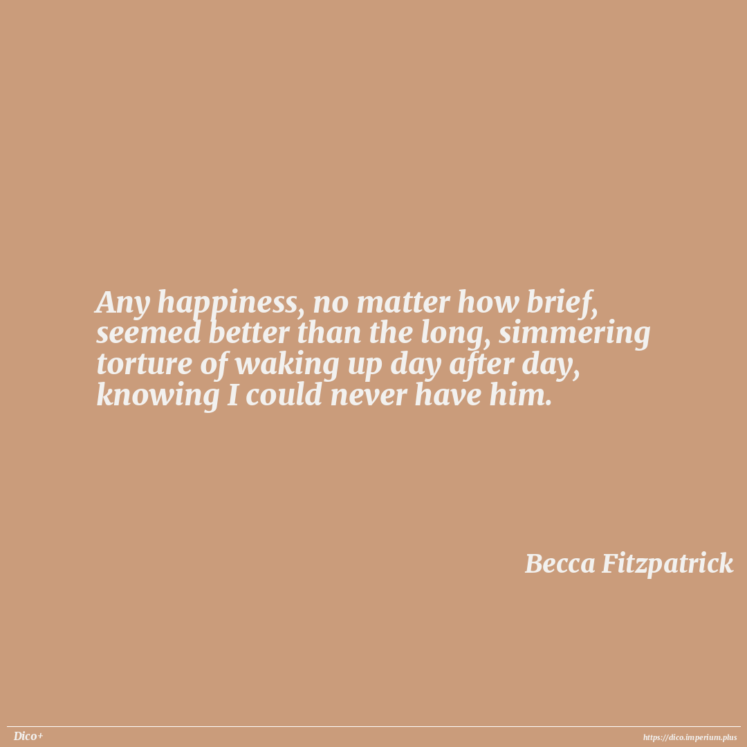 Any happiness, no matter how brief, seemed better than the long, simmering torture of waking up day after day, knowing I could never have him.