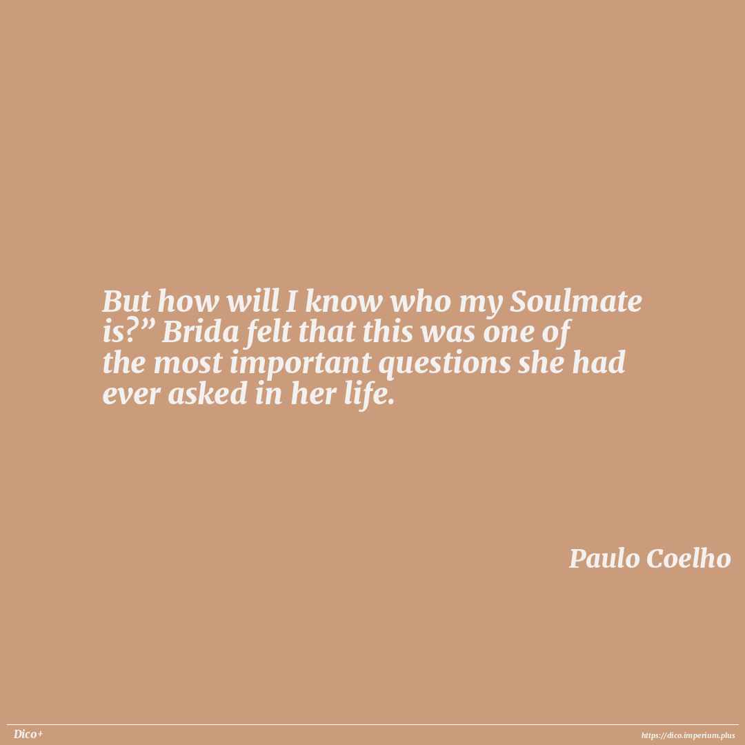 But how will I know who my Soulmate is?” Brida felt that this was one of the most important questions she had ever asked in her life.