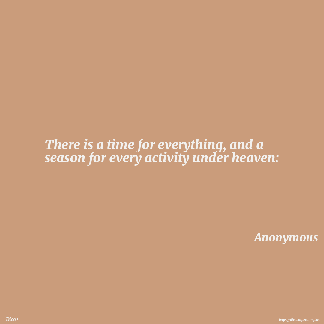 There is a time for everything, and a season for every activity under heaven: