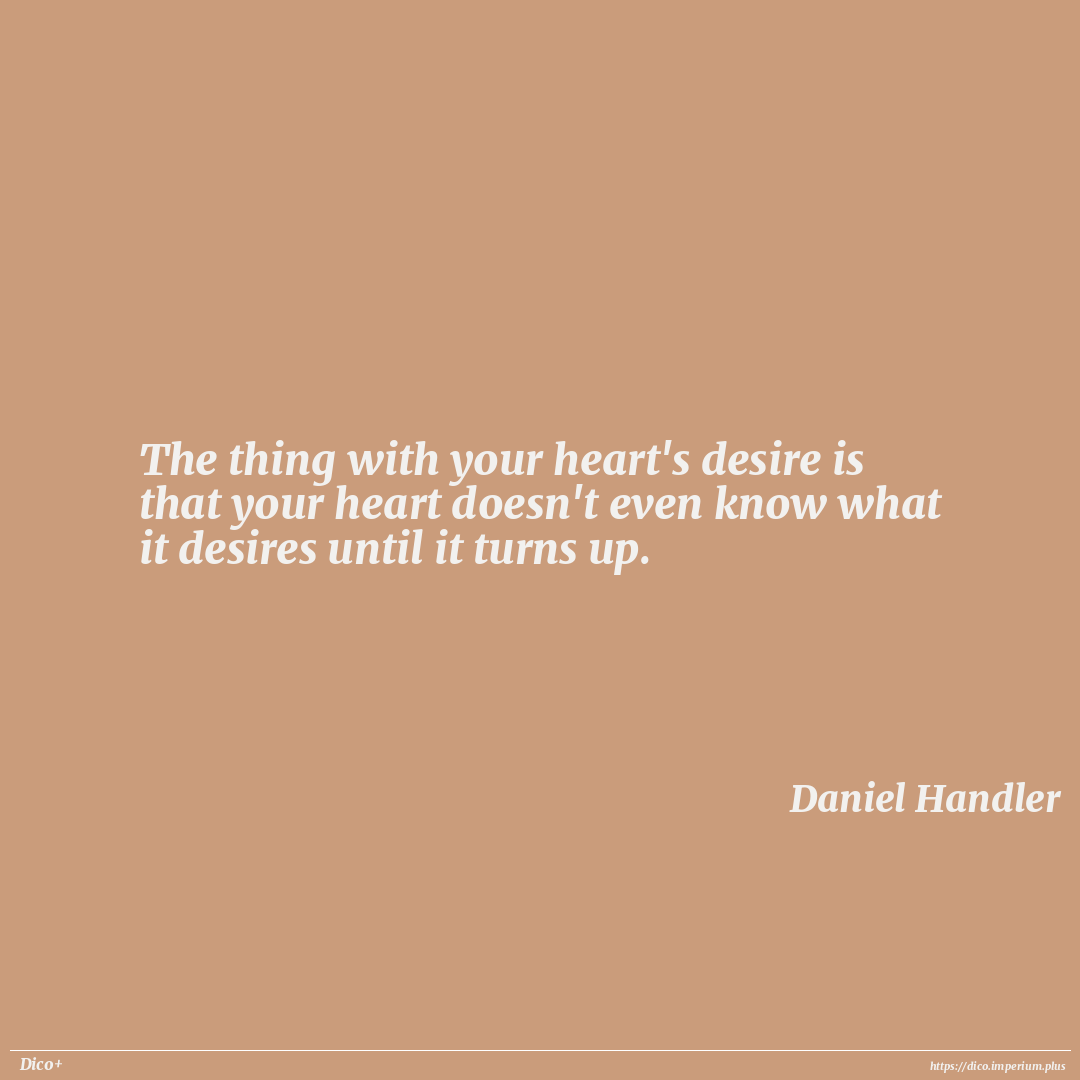 The thing with your heart's desire is that your heart doesn't even know what it desires until it turns up.