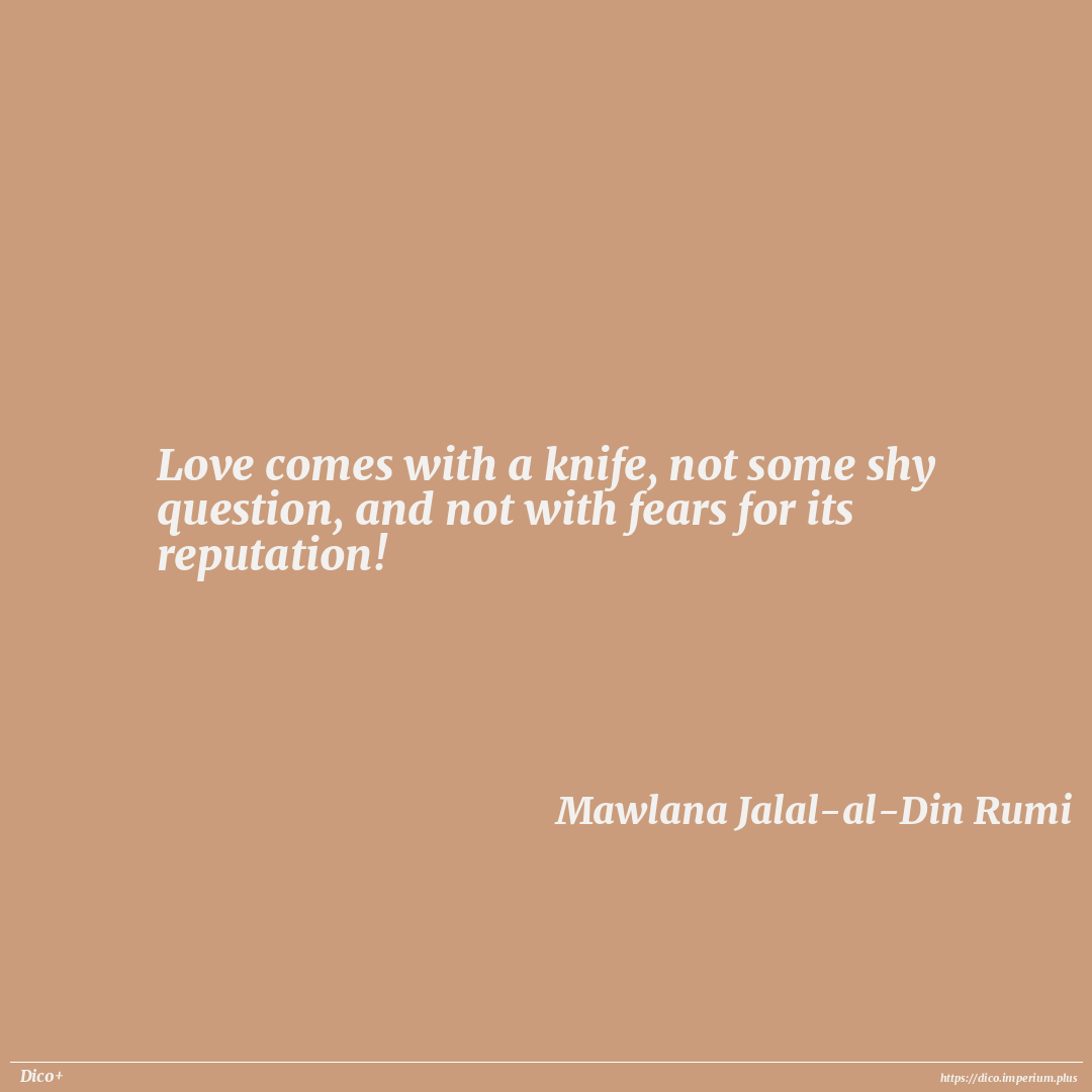 Love comes with a knife, not some shy question, and not with fears for its reputation!