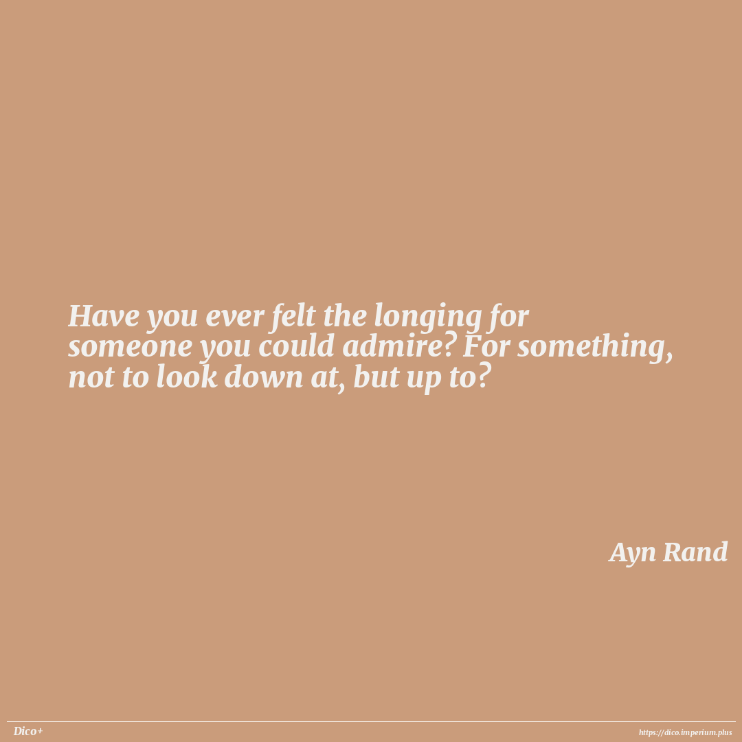 Have you ever felt the longing for someone you could admire? For something, not to look down at, but up to?