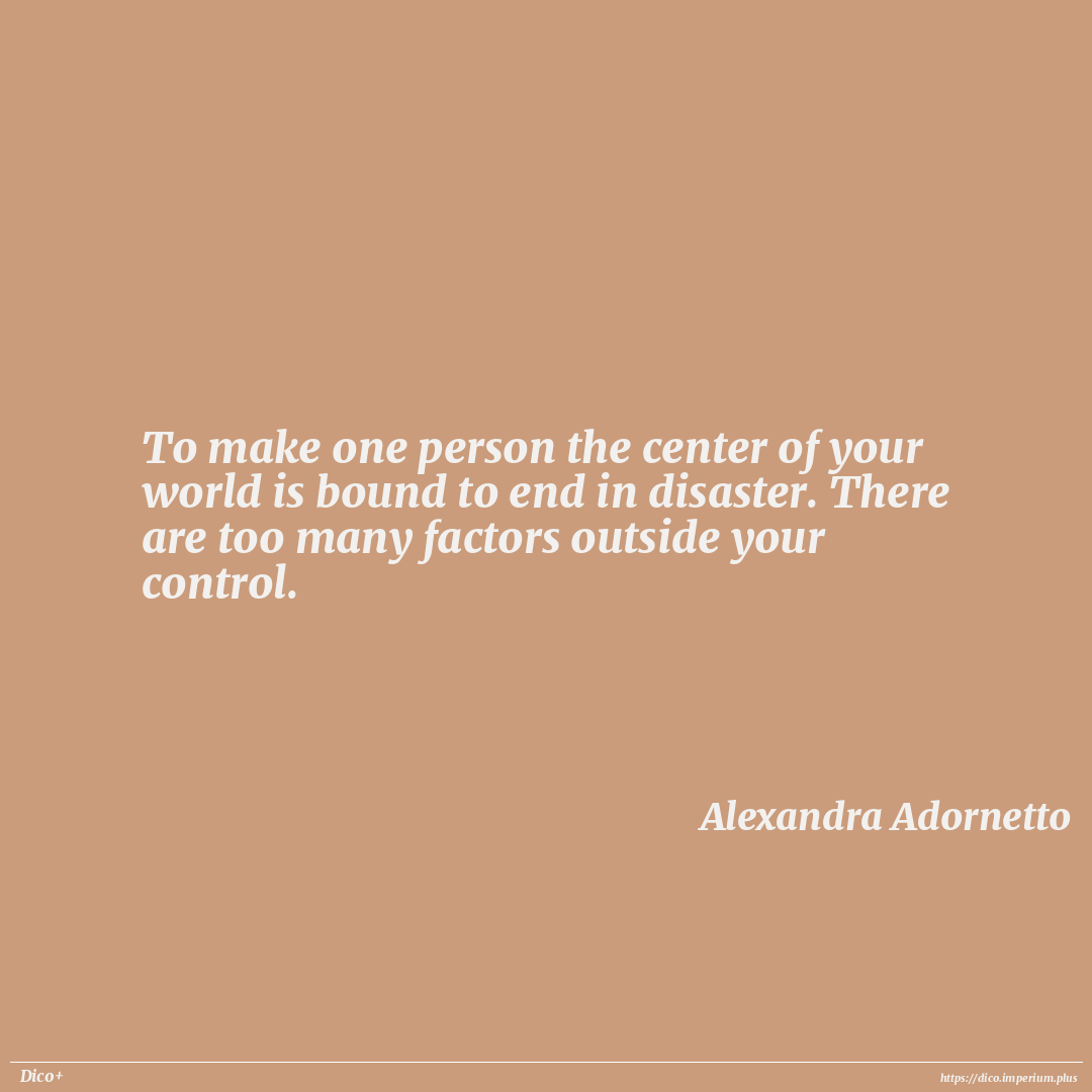 To make one person the center of your world is bound to end in disaster. There are too many factors outside your control.