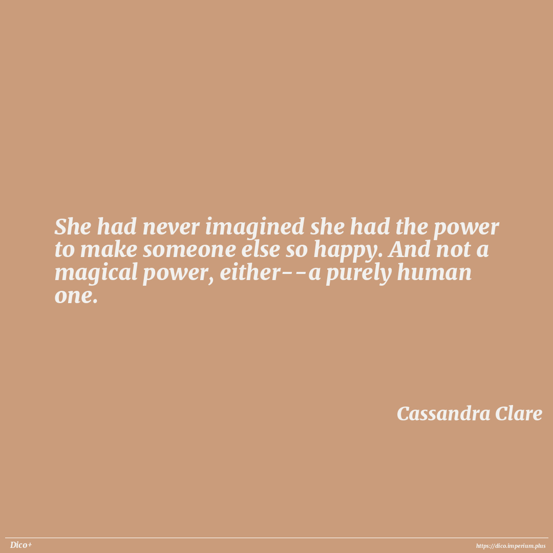 She had never imagined she had the power to make someone else so happy. And not a magical power, either--a purely human one.