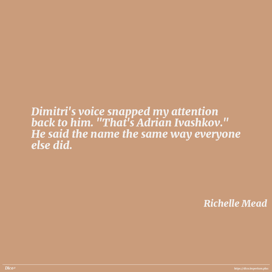 Dimitri's voice snapped my attention back to him. "That's Adrian Ivashkov." He said the name the same way everyone else did.