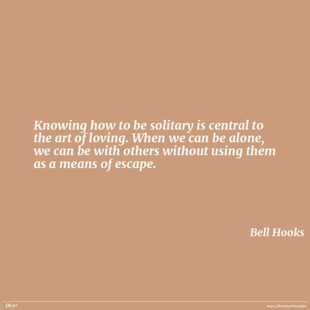 Knowing how to be solitary is central to the art of loving. When we can be alone, we can be with others without using them as a means of escape.