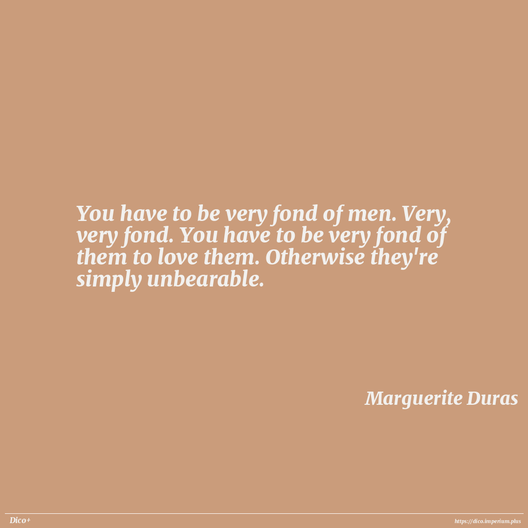 You have to be very fond of men. Very, very fond. You have to be very fond of them to love them. Otherwise they're simply unbearable.
