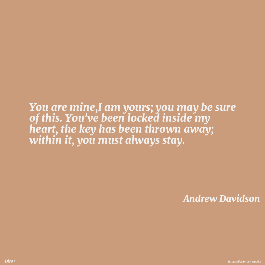 You are mine,I am yours; you may be sure of this. You've been locked inside my heart, the key has been thrown away; within it, you must always stay.
