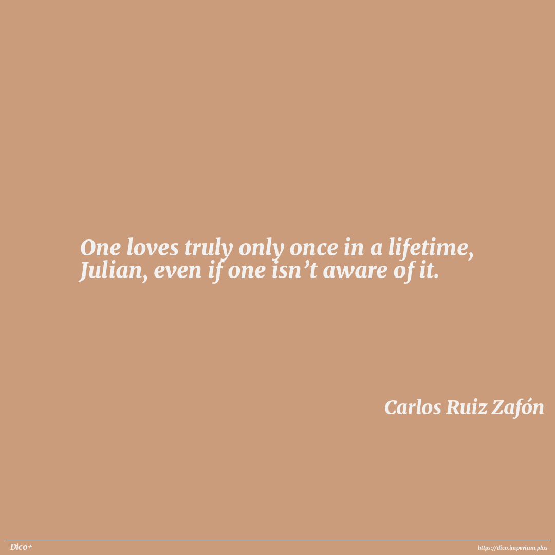 One loves truly only once in a lifetime, Julian, even if one isn’t aware of it.