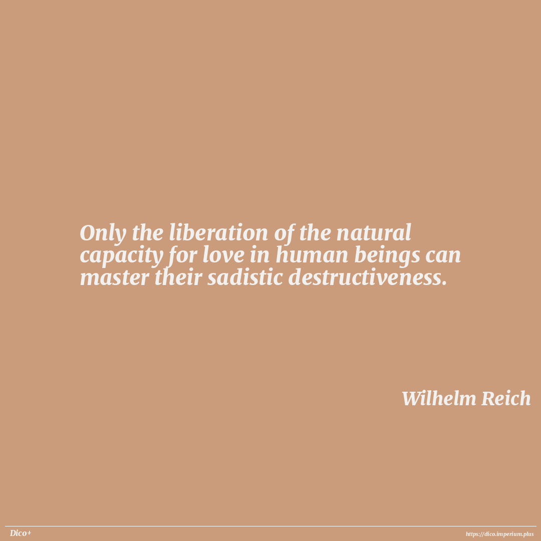 Only the liberation of the natural capacity for love in human beings can master their sadistic destructiveness.