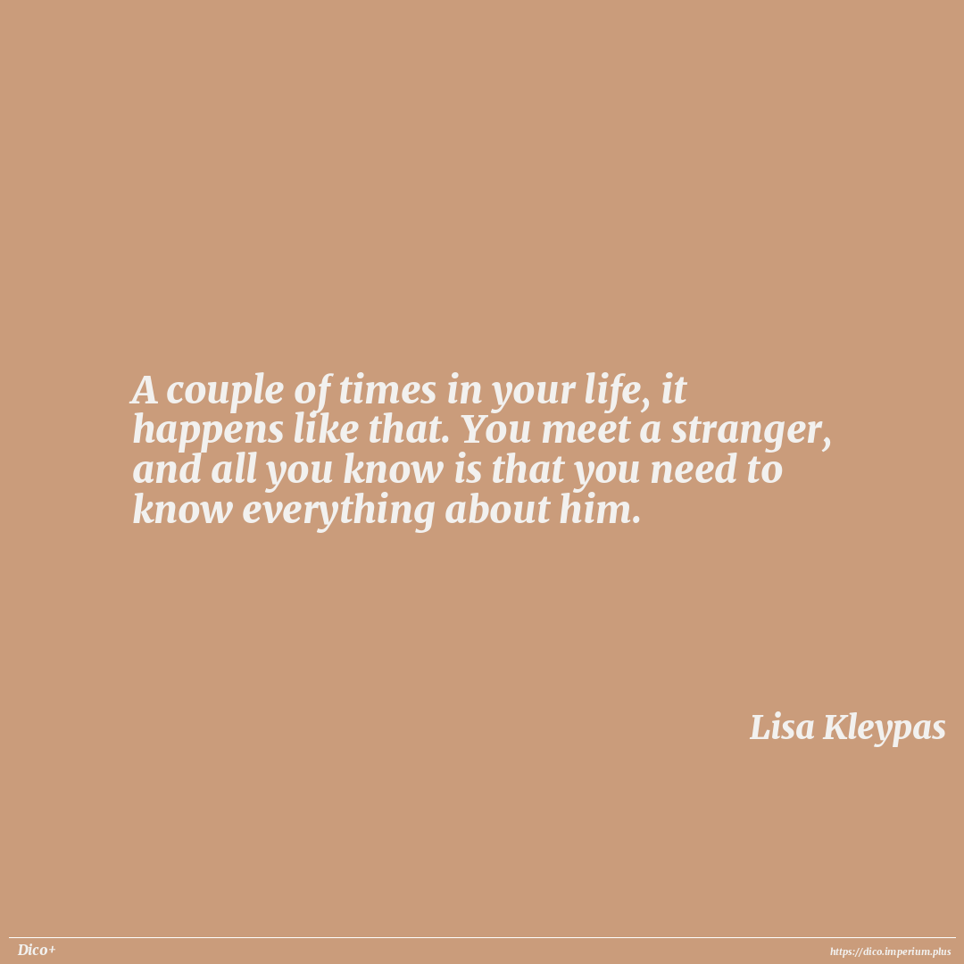A couple of times in your life, it happens like that. You meet a stranger, and all you know is that you need to know everything about him.