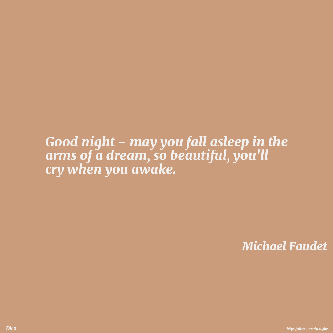Good night - may you fall asleep in the arms of a dream, so beautiful, you'll cry when you awake.