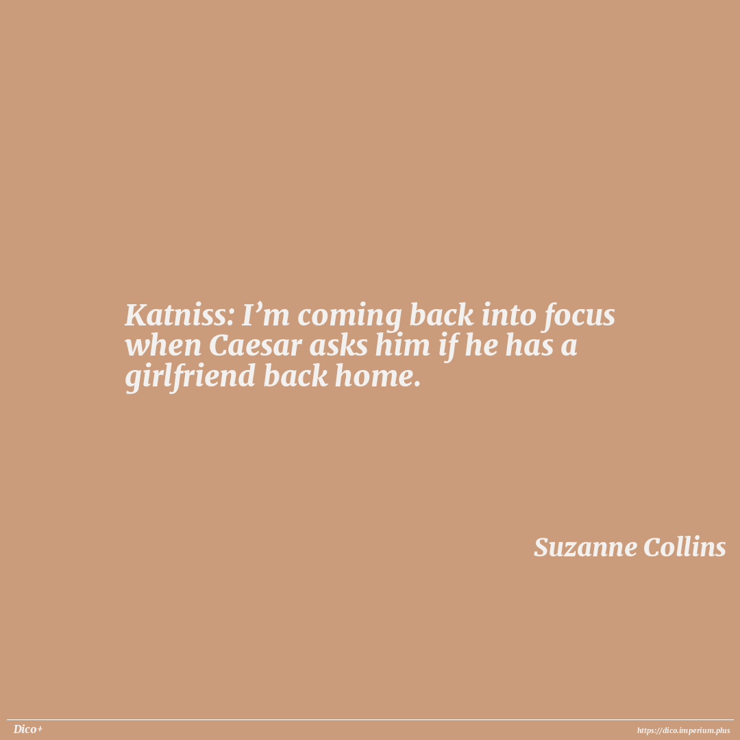 Katniss: I’m coming back into focus when Caesar asks him if he has a girlfriend back home.