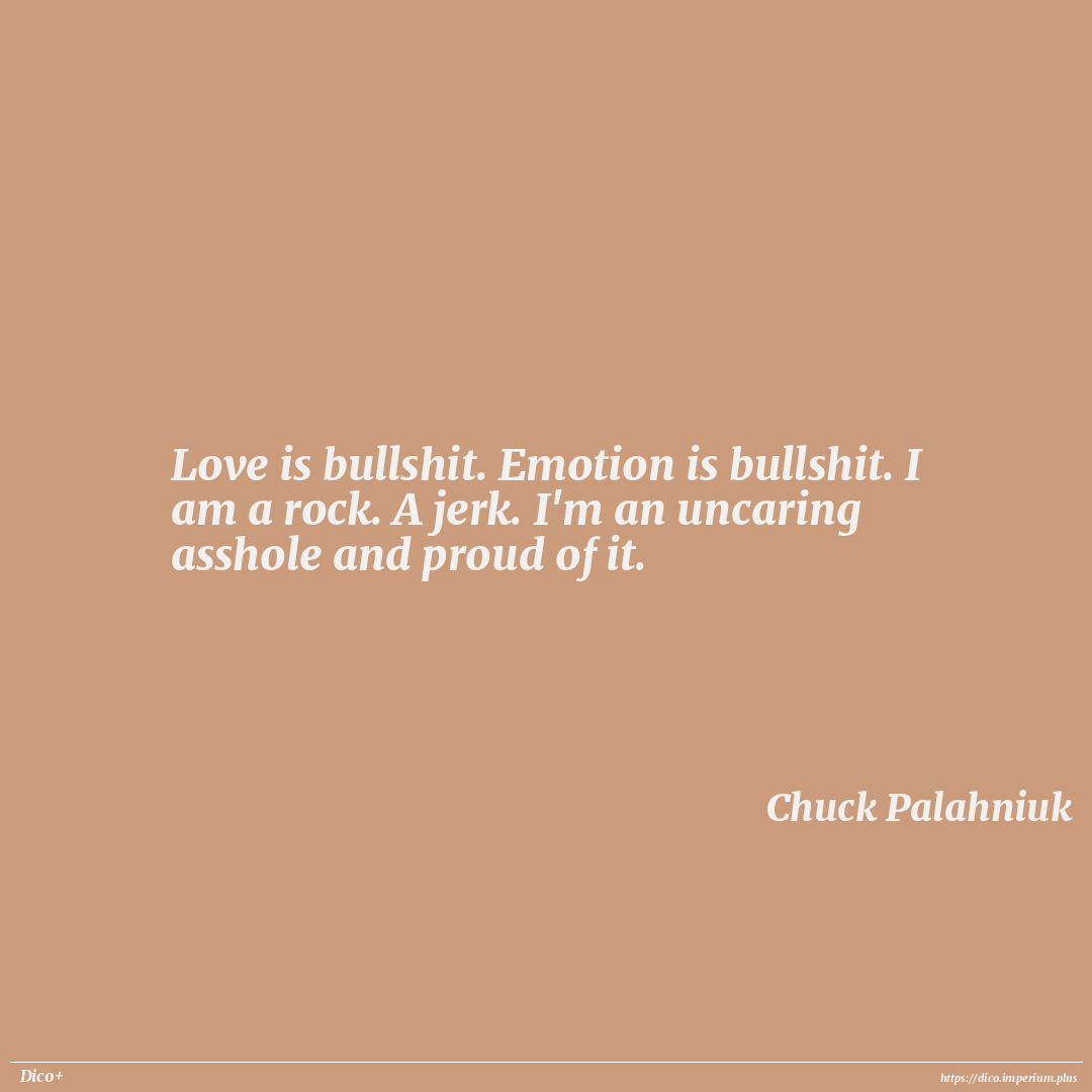 Love is bullshit. Emotion is bullshit. I am a rock. A jerk. I'm an uncaring asshole and proud of it.
