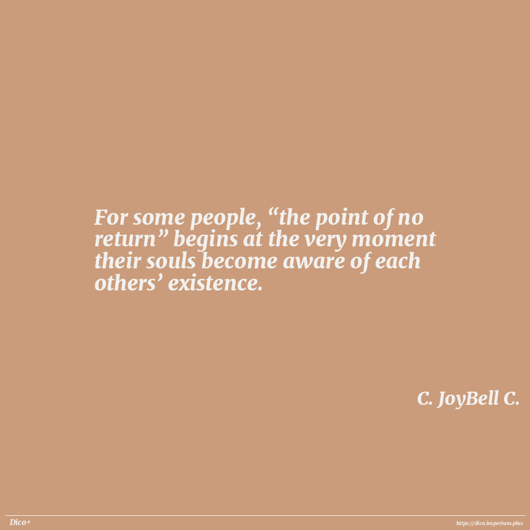 For some people, “the point of no return” begins at the very moment their souls become aware of each others’ existence.
