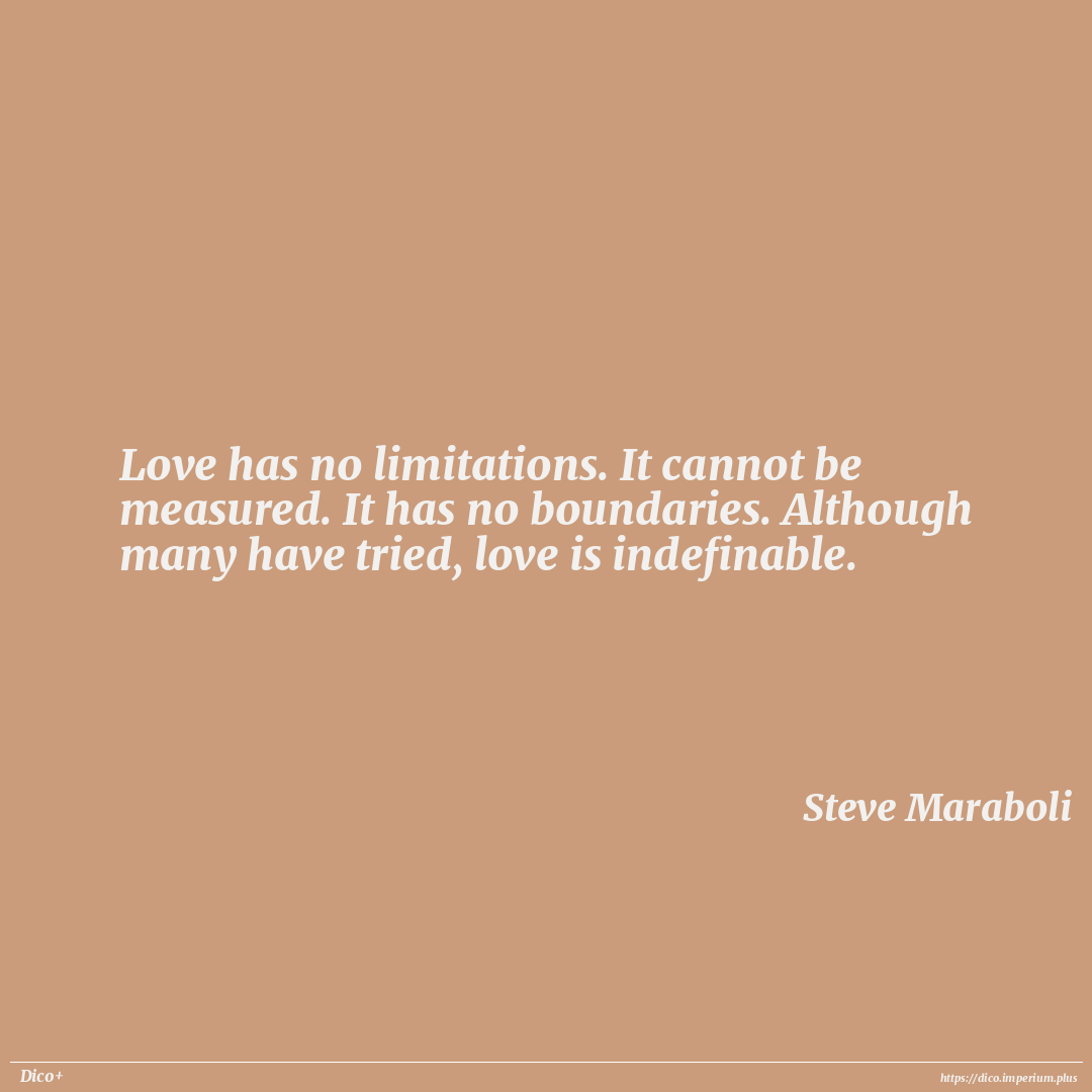 Love has no limitations. It cannot be measured. It has no boundaries. Although many have tried, love is indefinable.