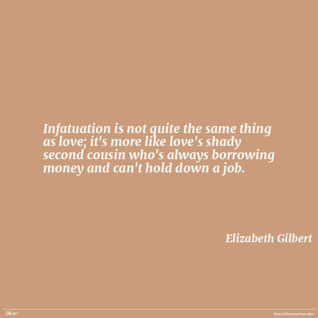 Infatuation is not quite the same thing as love; it's more like love's shady second cousin who's always borrowing money and can't hold down a job.