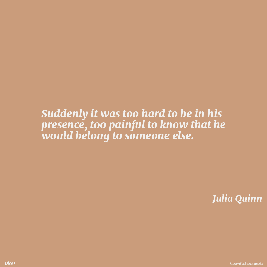 Suddenly it was too hard to be in his presence, too painful to know that he would belong to someone else.