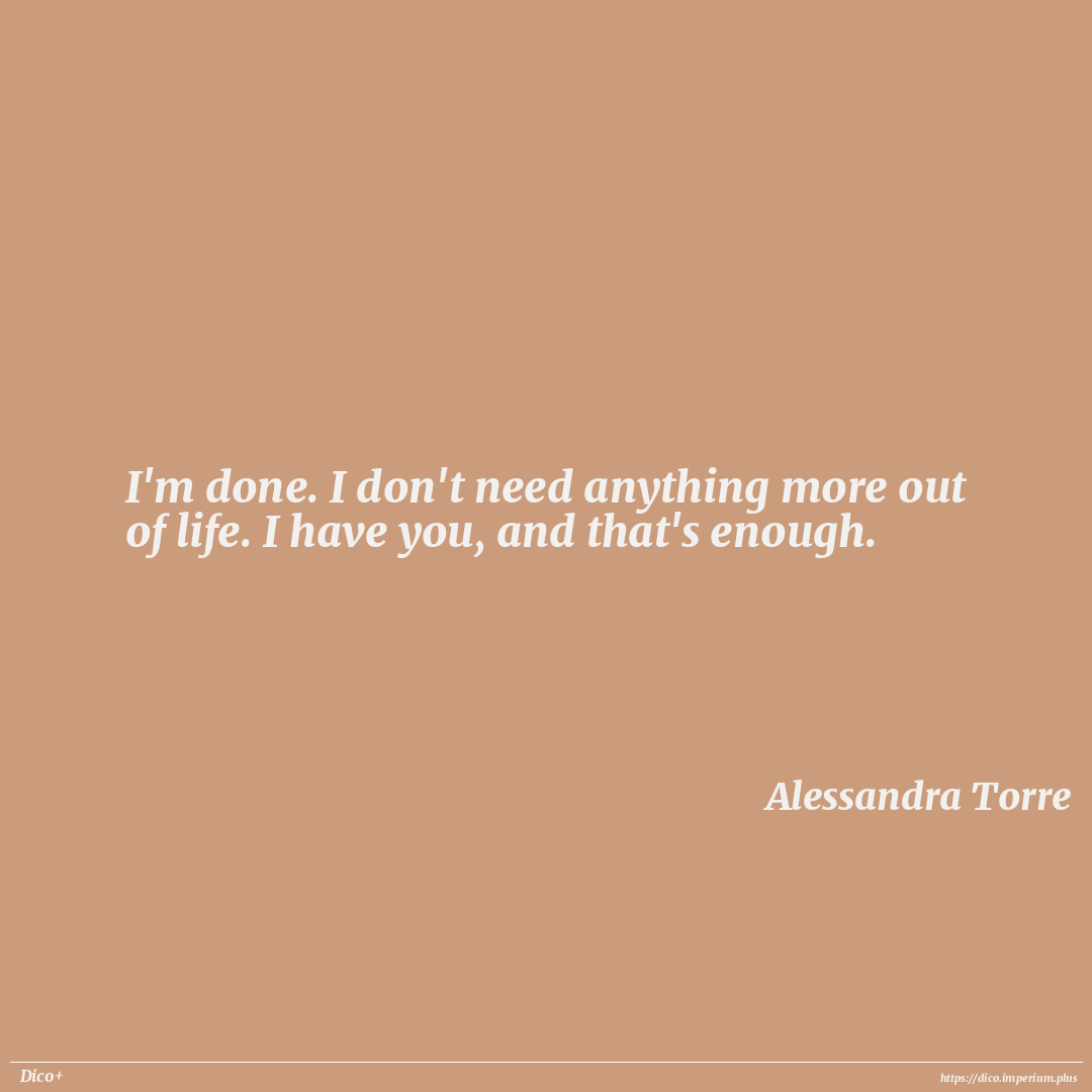 I'm done. I don't need anything more out of life. I have you, and that's enough.