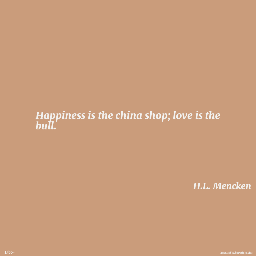 Happiness is the china shop; love is the bull.