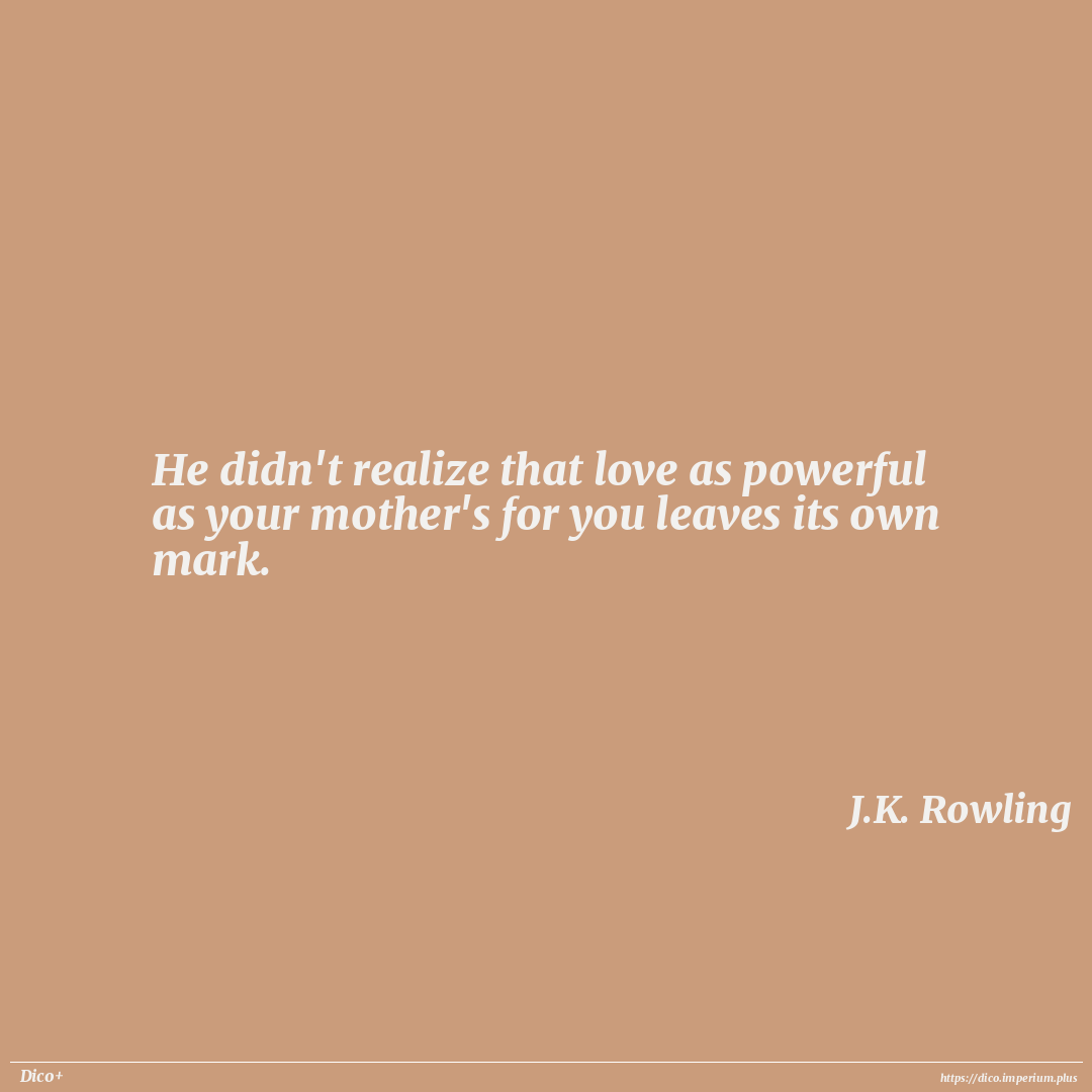 He didn't realize that love as powerful as your mother's for you leaves its own mark.