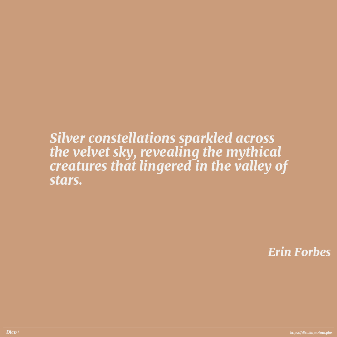 Silver constellations sparkled across the velvet sky, revealing the mythical creatures that lingered in the valley of stars.