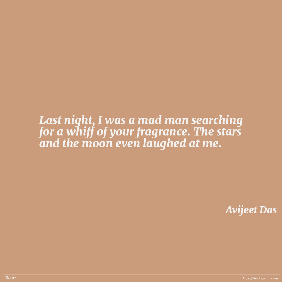 Last night, I was a mad man searching for a whiff of your fragrance. The stars and the moon even laughed at me.