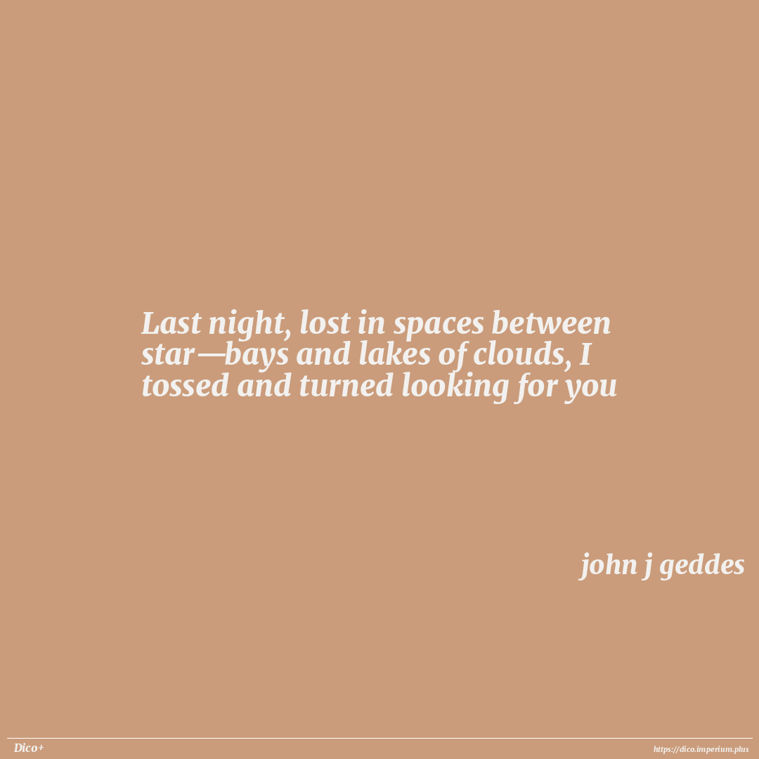 Last night, lost in spaces between star—bays and lakes of clouds, I tossed and turned looking for you