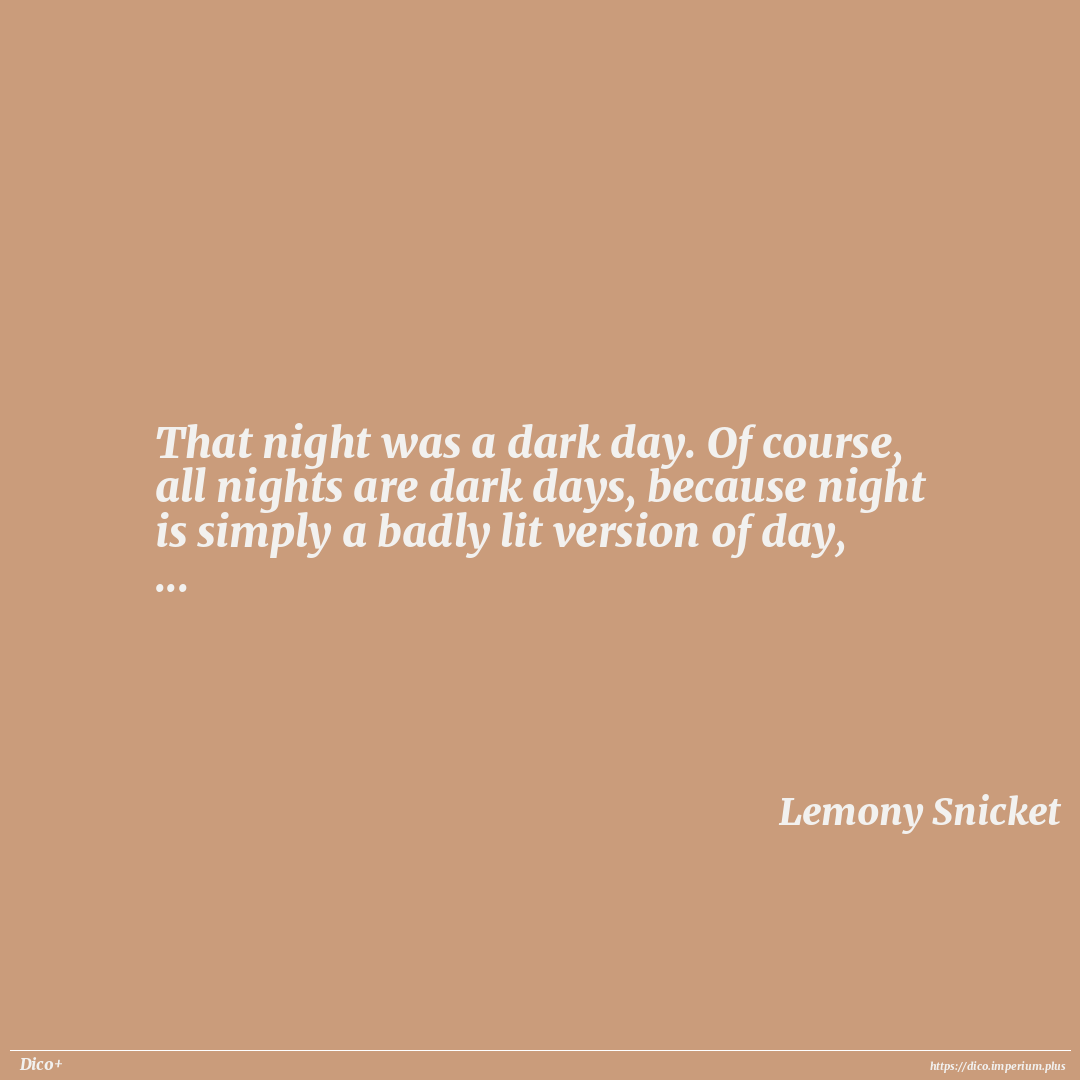 That night was a dark day. Of course, all nights are dark days, because night is simply a badly lit version of day, ...