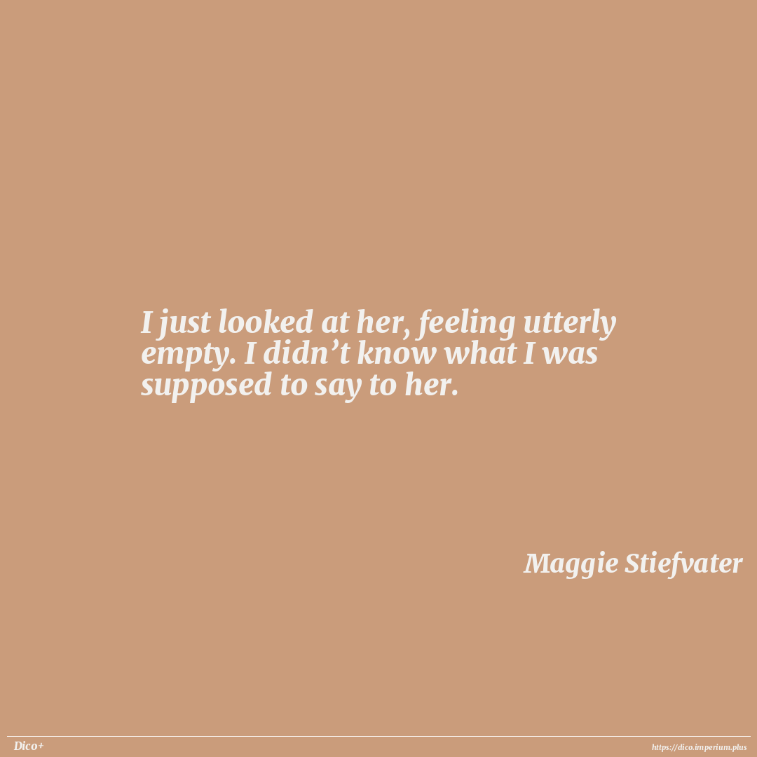 I just looked at her, feeling utterly empty. I didn’t know what I was supposed to say to her.